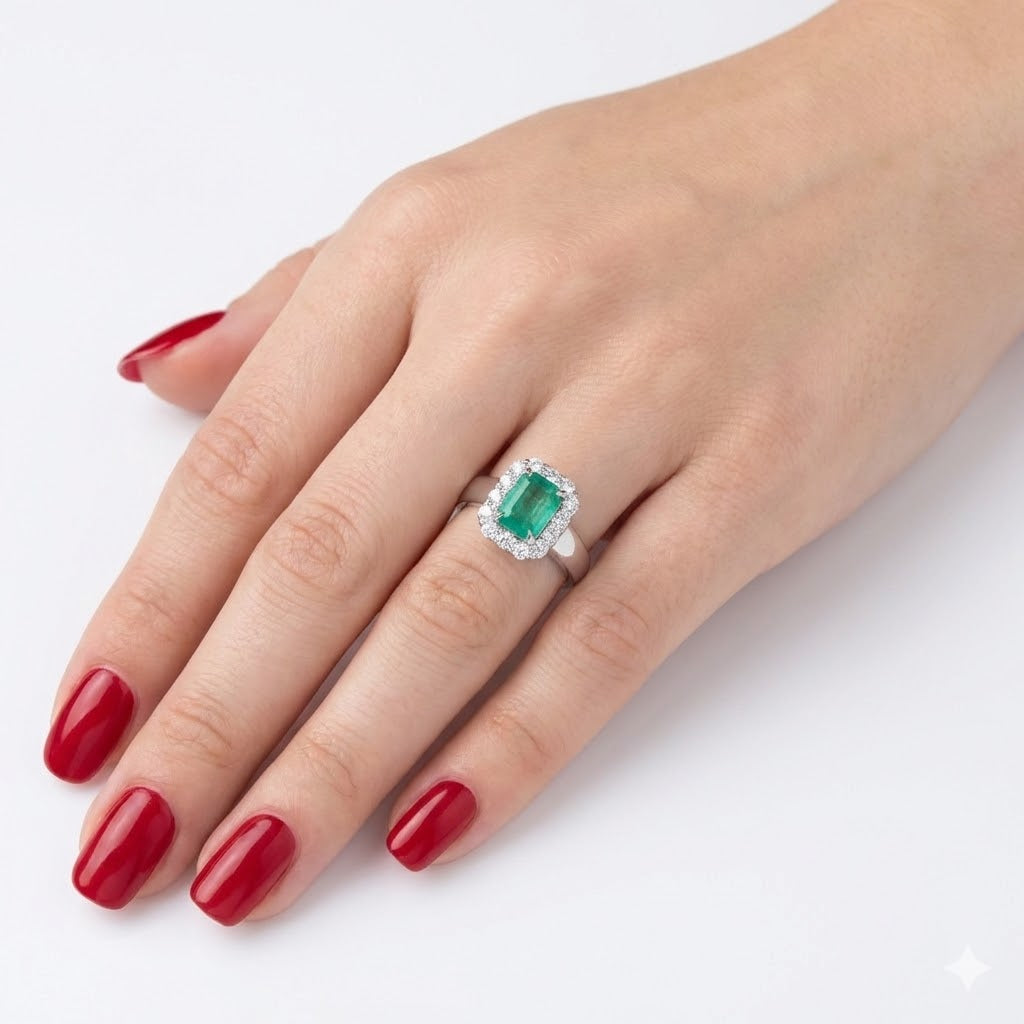 1.25 Carat Natural Diamond Royal Design Statement Emerald Ring in 14K Gold