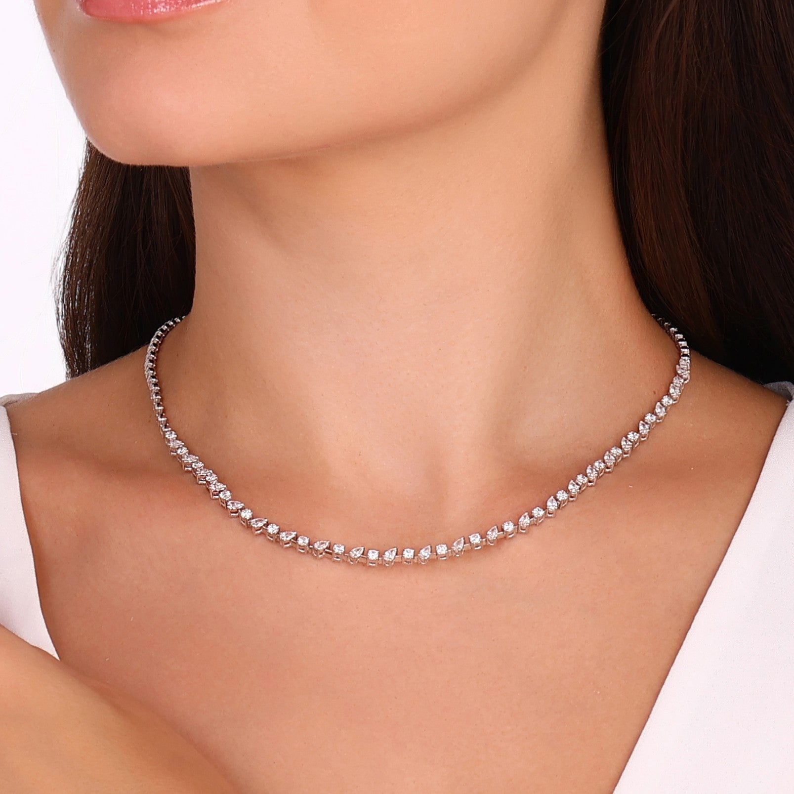 1.80 CTW Diamond Londia Heartline Design Bridal Necklace 18k Fine Gold