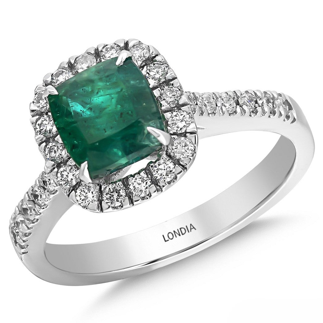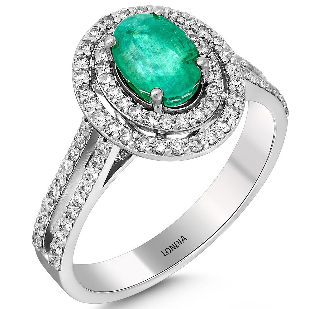 1.70 Ct. Natural Diamond And Emerald Ring in 18K Gold