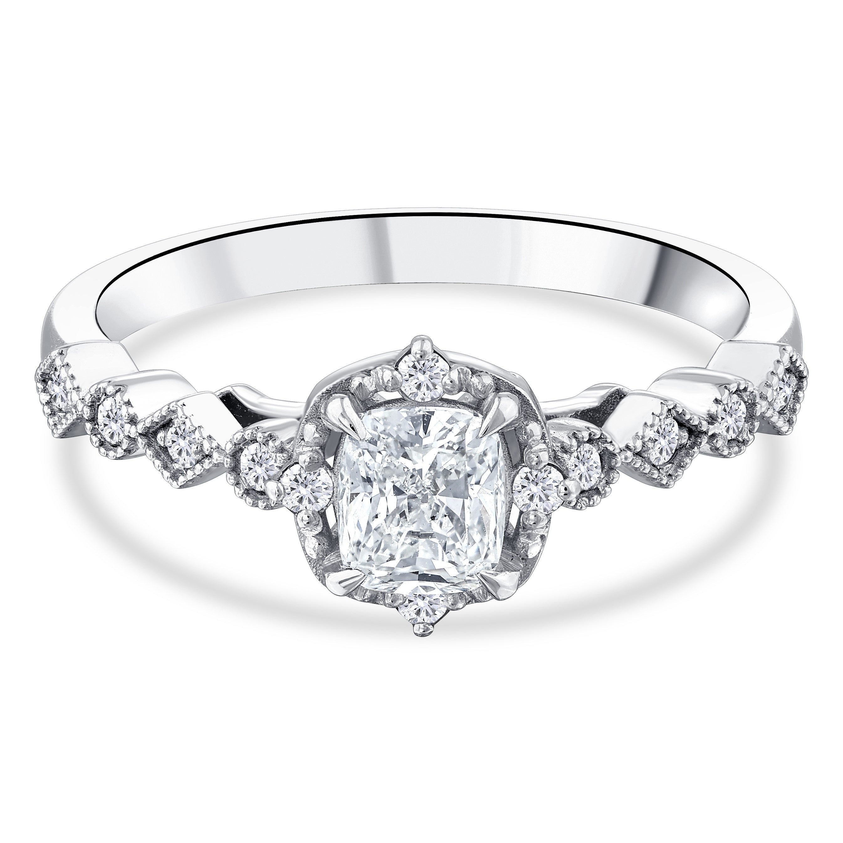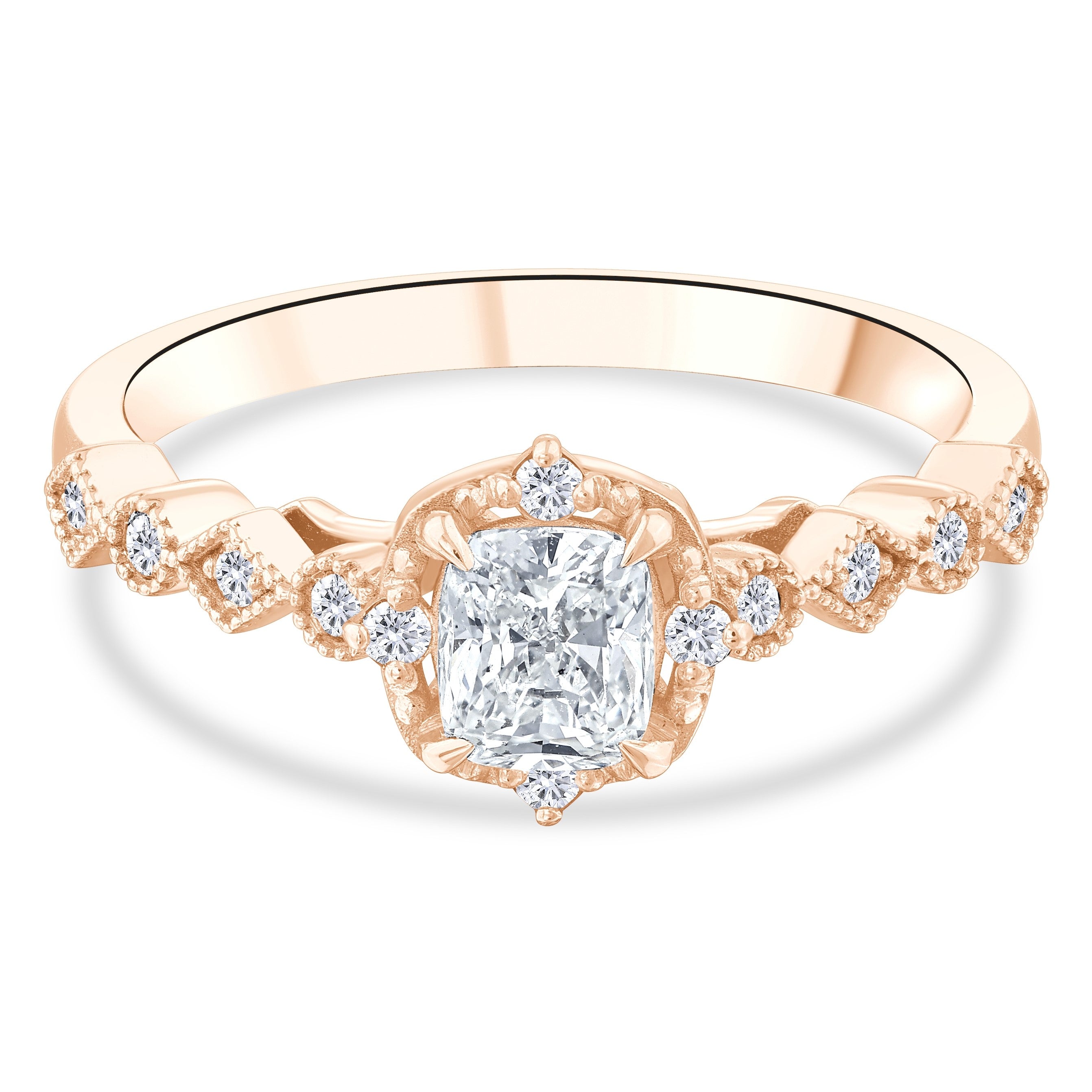 0.60 Ct. Natural Cushion Cut Diamond Vintage Design ''Seraphina'' Ring in 14K Gold