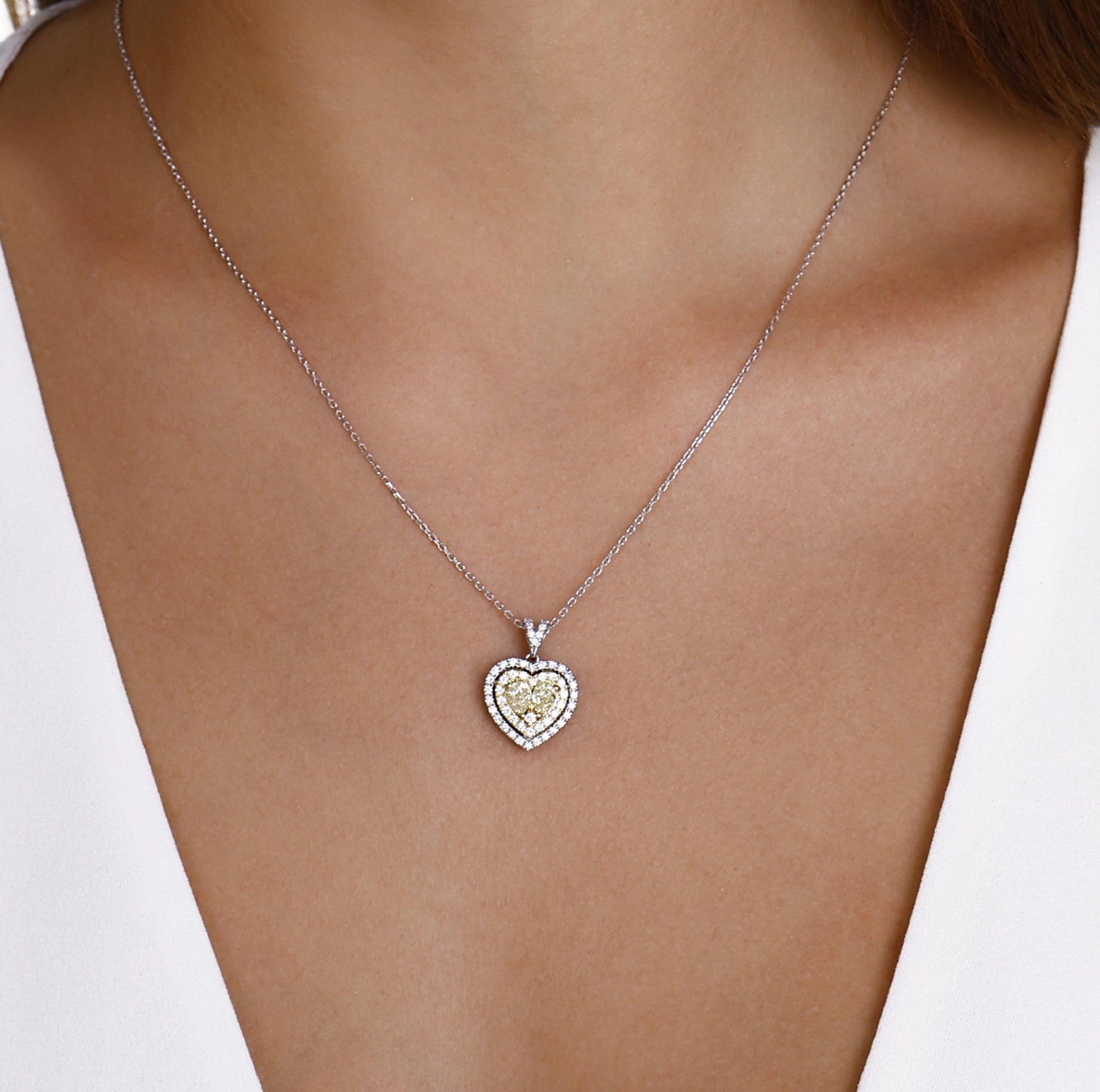 1.00 Ct. Diamond Heart Design Fancy Yellow Necklace 18K Fine Gold