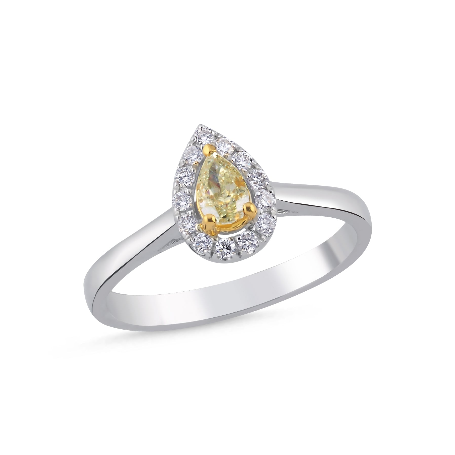 0.45 Carat Fancy Yellow Pear Diamond 14K Gold Ring