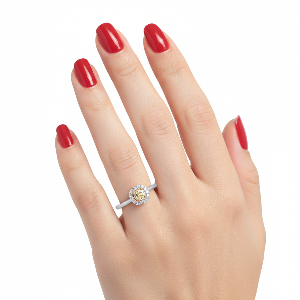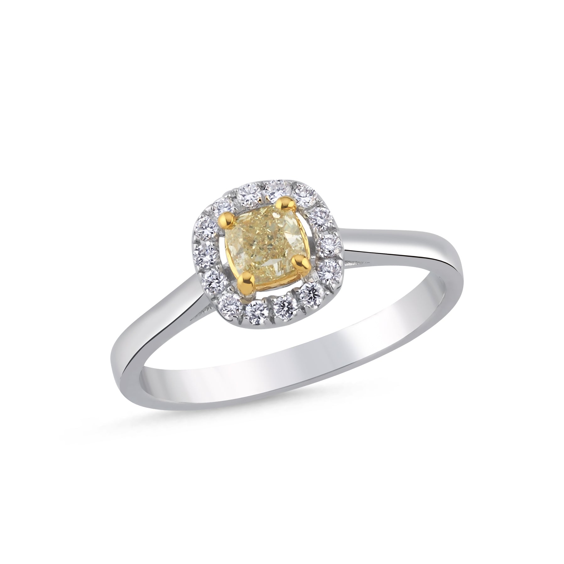 0.50 Carat Fancy Yellow Cushion Diamond 14K Gold Ring