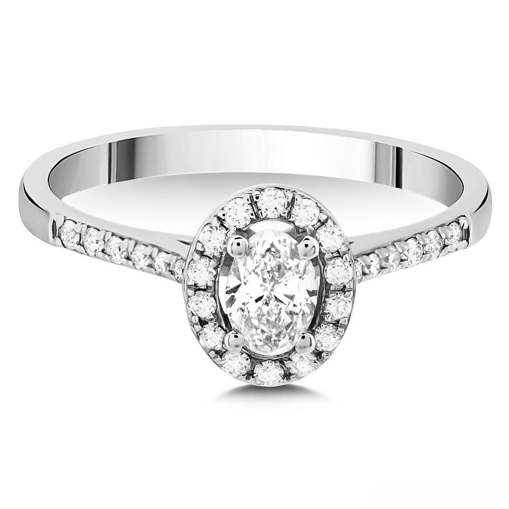 0.45 Ct. Natural Diamond Oval Halo Design Ring in 14K Gold