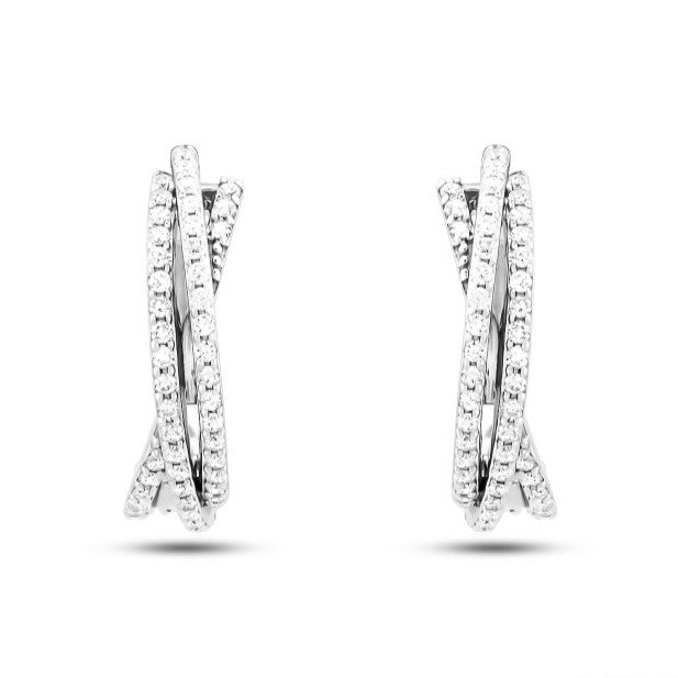 0.55 ct. Line Design Round Diamond Hoop Earring 14K Gold