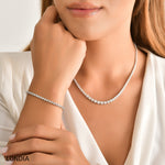 Diamond tennis necklaces bring timeless sophistication to your look. With meticulously crafted diamonds, these radiant designs gracefully adorn your neckline and seamlessly elevate your style for every occasion.