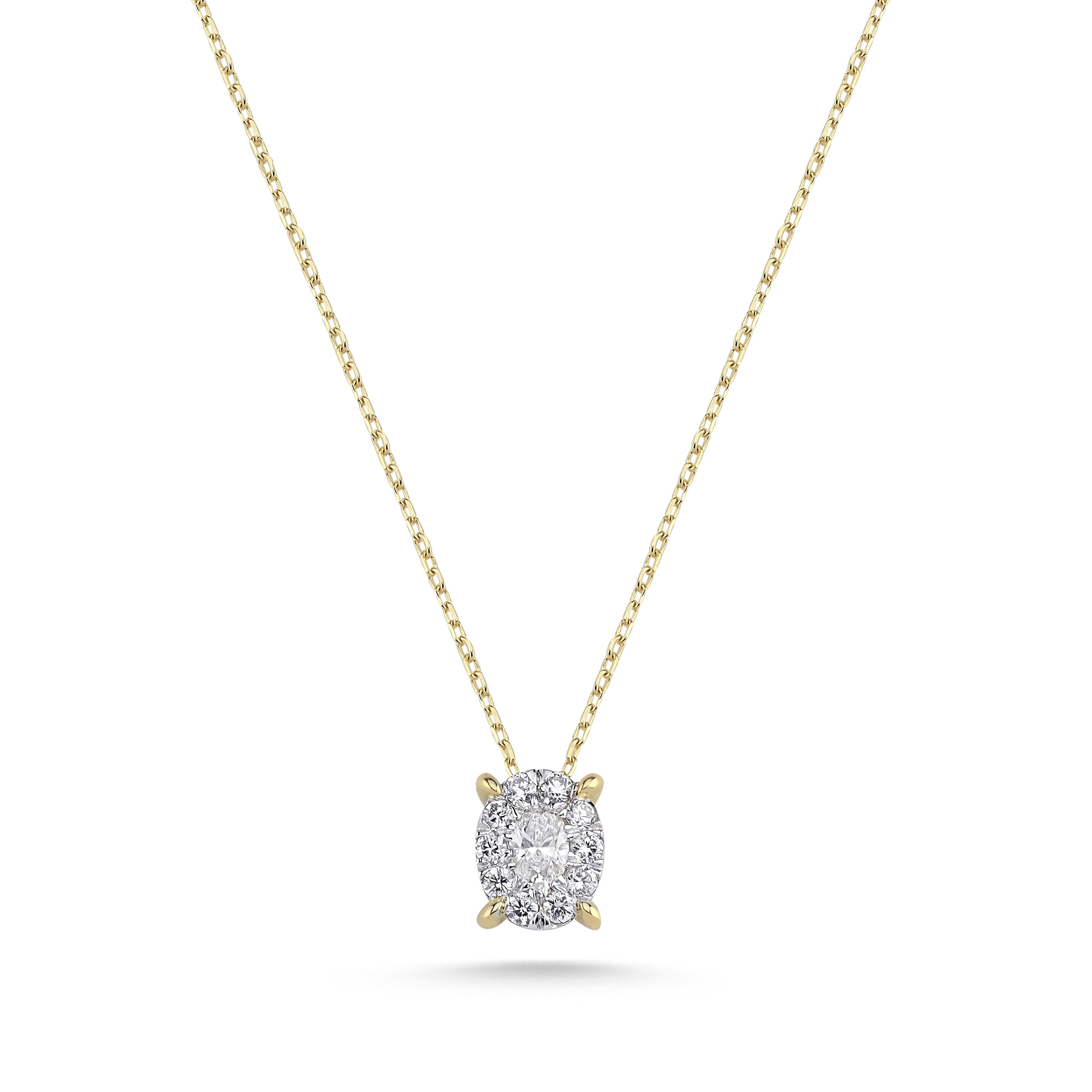14K Gold, Oval Design Engagement Ring 0.30 Carat Diamonds, Giving the Appearance of 1.00 Carat