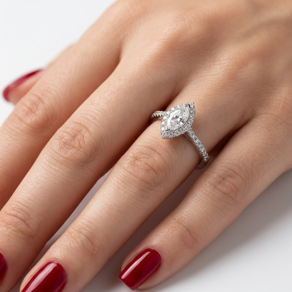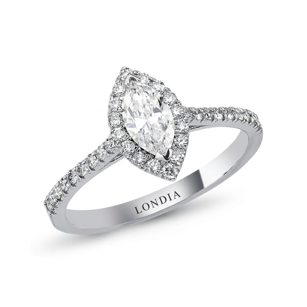 0.80 Carat Natural Diamond Halo Design Ring with Side Stones, 18K Gold