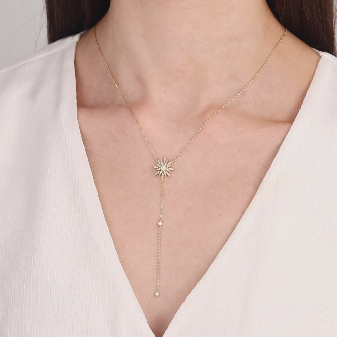 0.35 ct. Diamond Star Design Necklace 14k Fine Gold