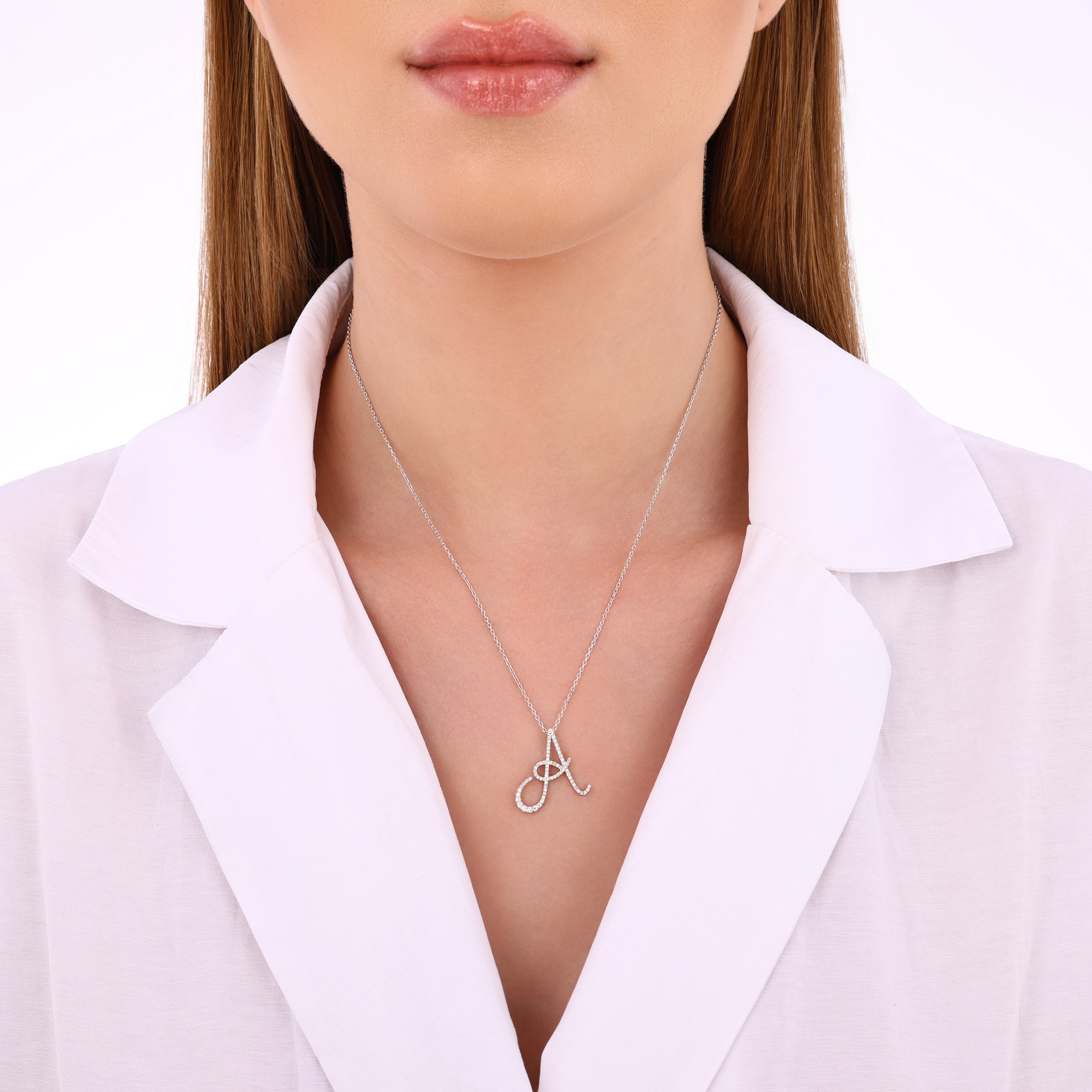 0.25 ct. Diamond A Initial Design Necklace 14k Fine Gold