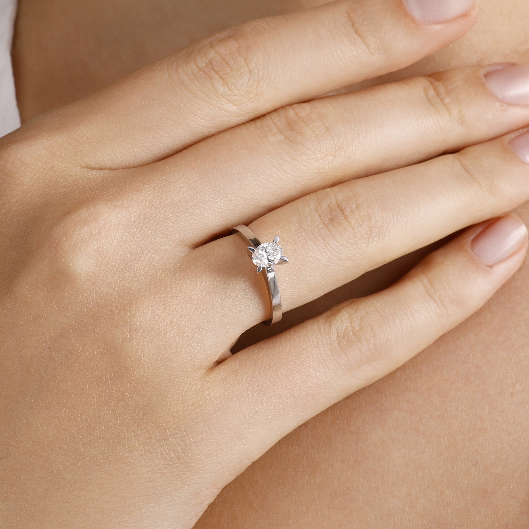 0.50 Ct. Natural Diamond Oval Solitaire ''Classic'' Ring in 14K Gold
