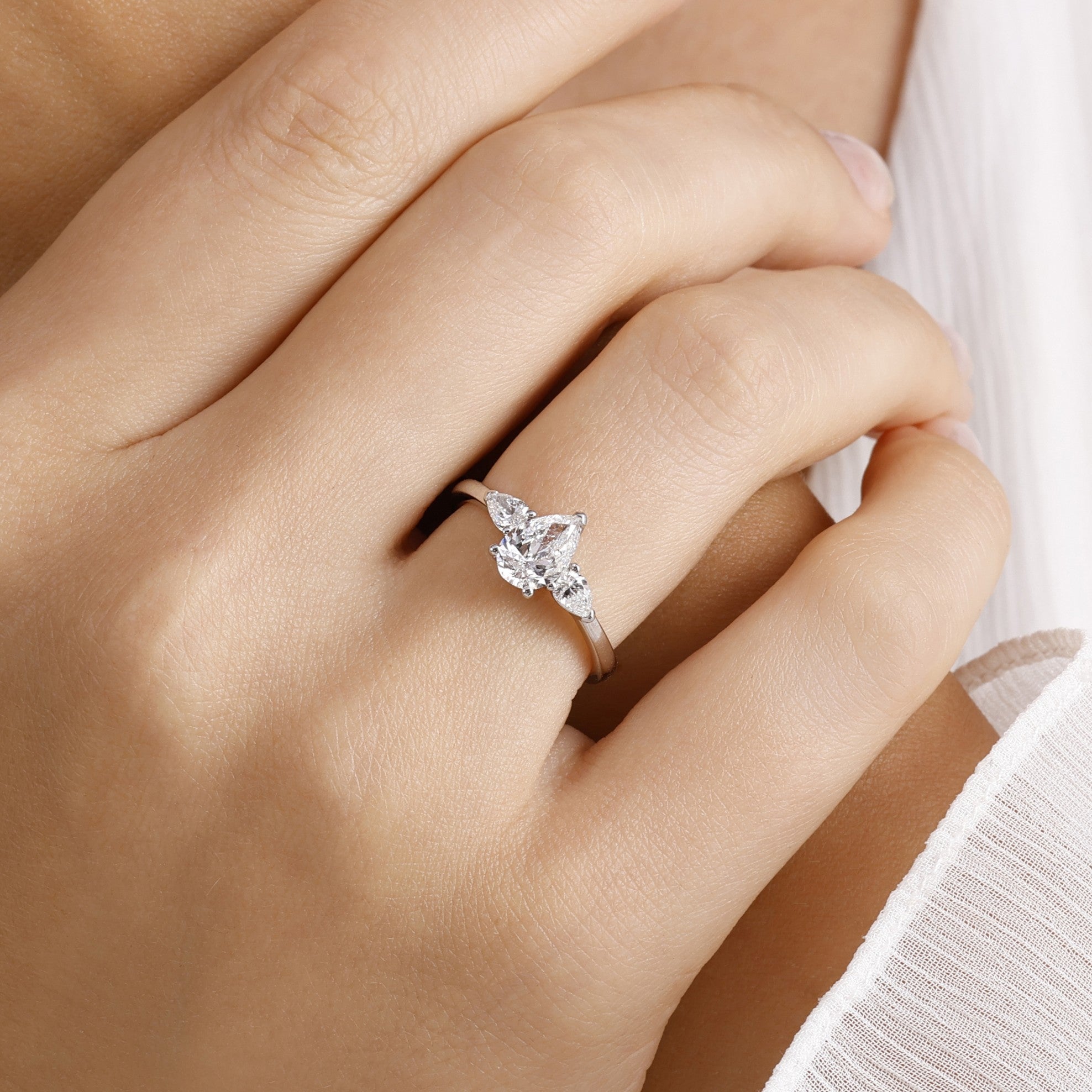 1.20 Ct. Natural Pear Diamond Solitaire ''Modern'' Ring in 18K Gold