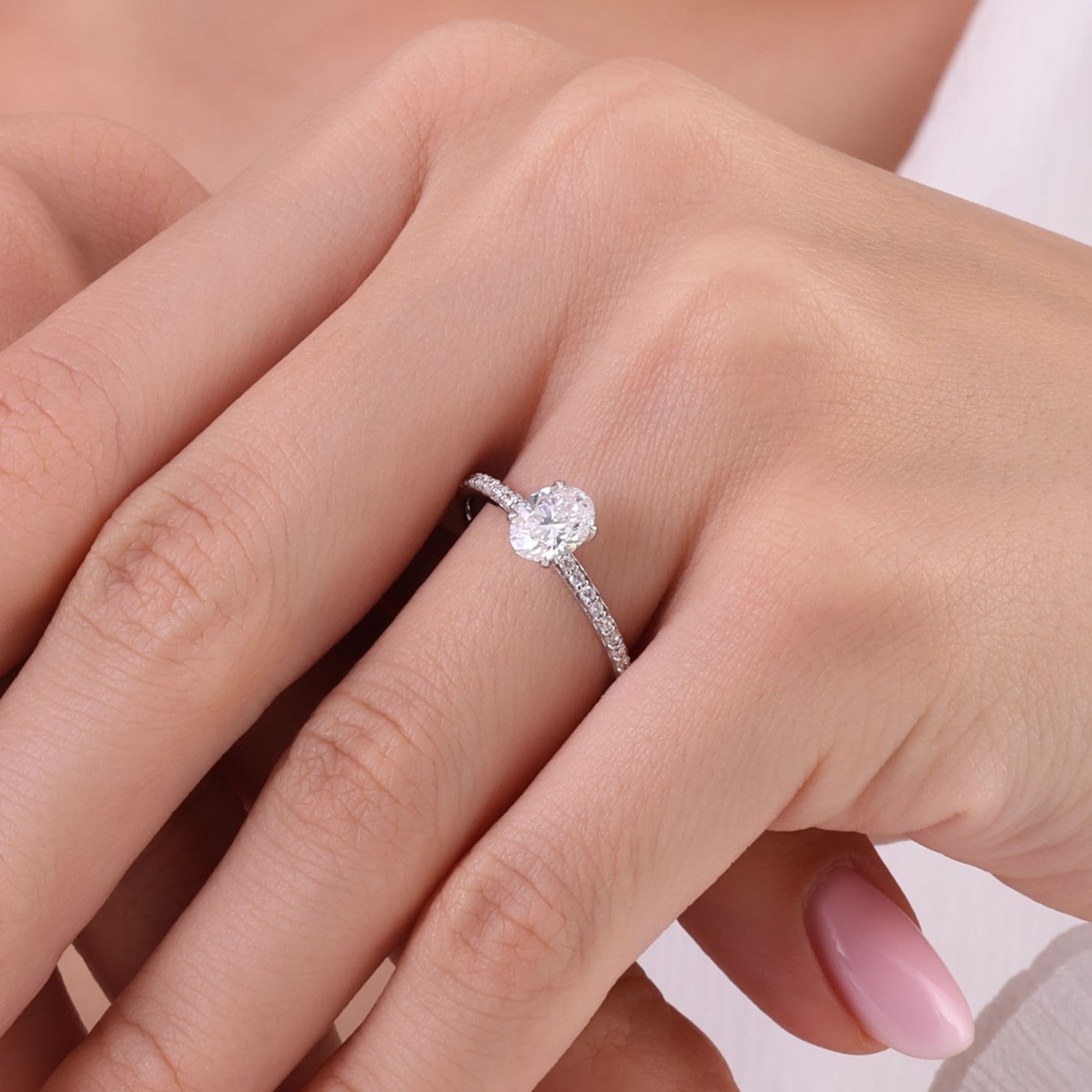 1.05 Ct. Natural Diamond Oval Solitaire ''Side Stone'' Ring in 14K Gold