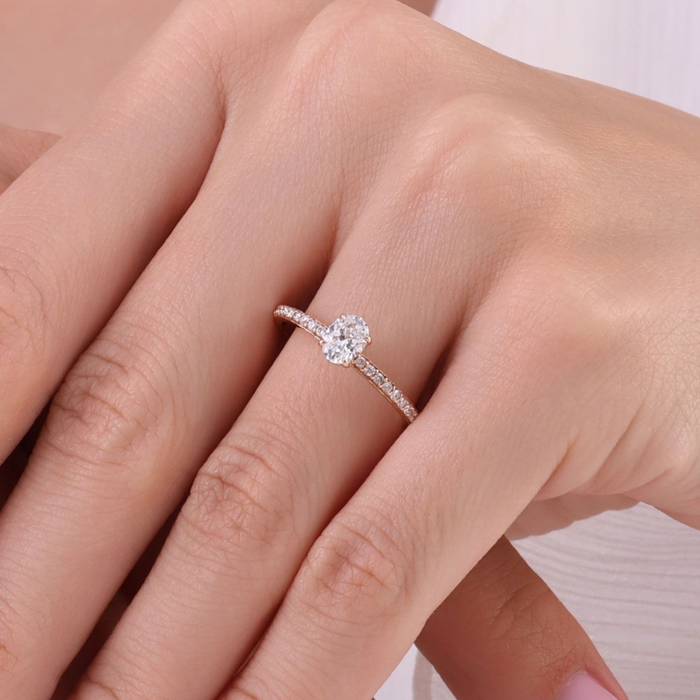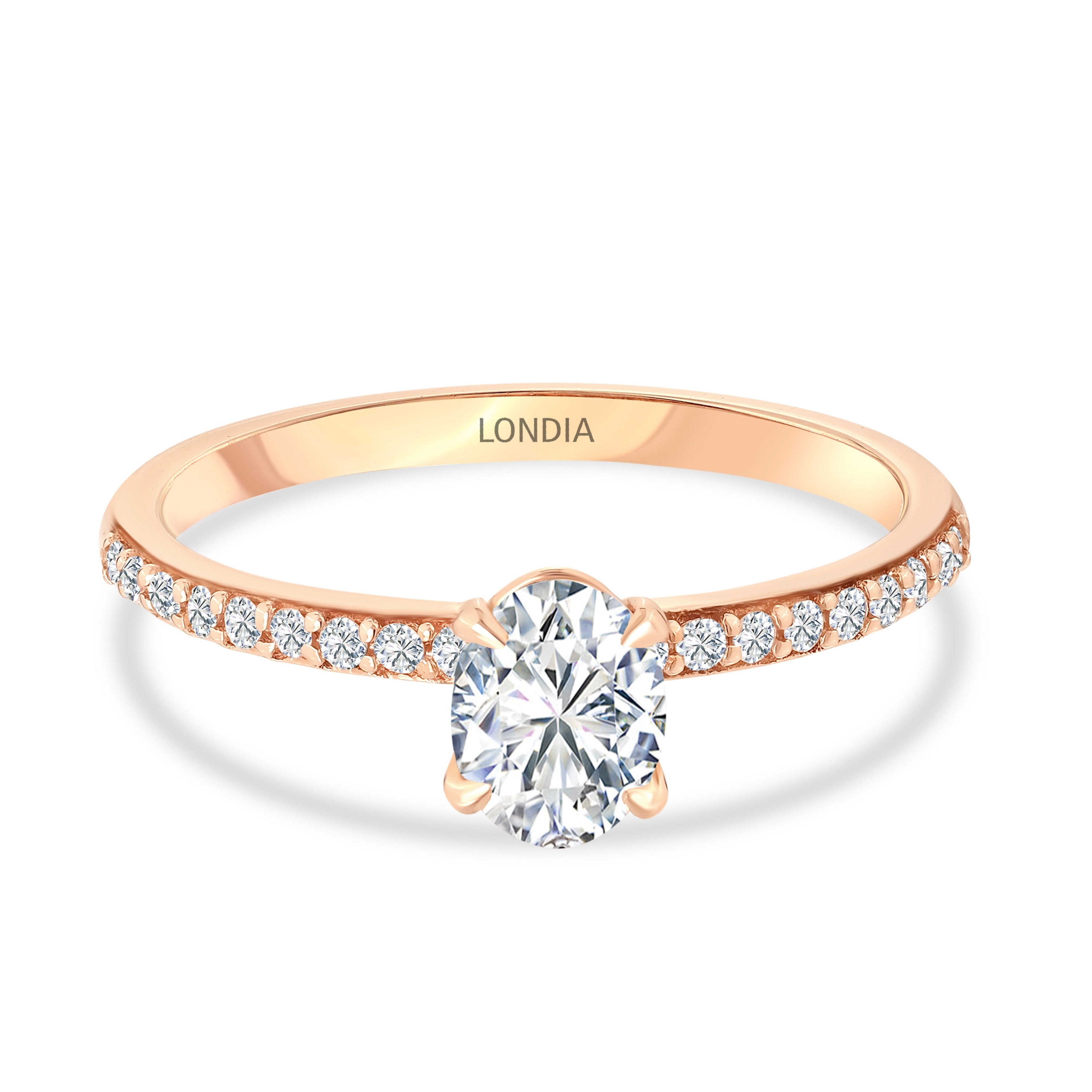 0.65 Ct. Natural Diamond Oval Solitaire ''Side Stone'' Ring in 14K Gold