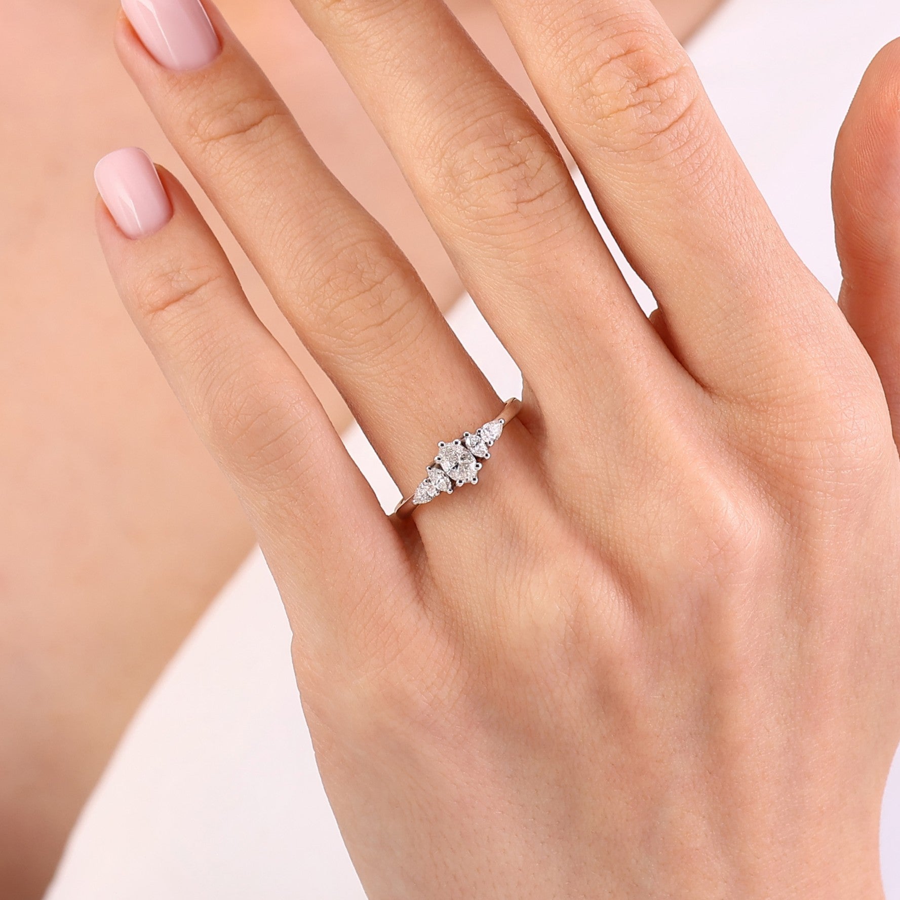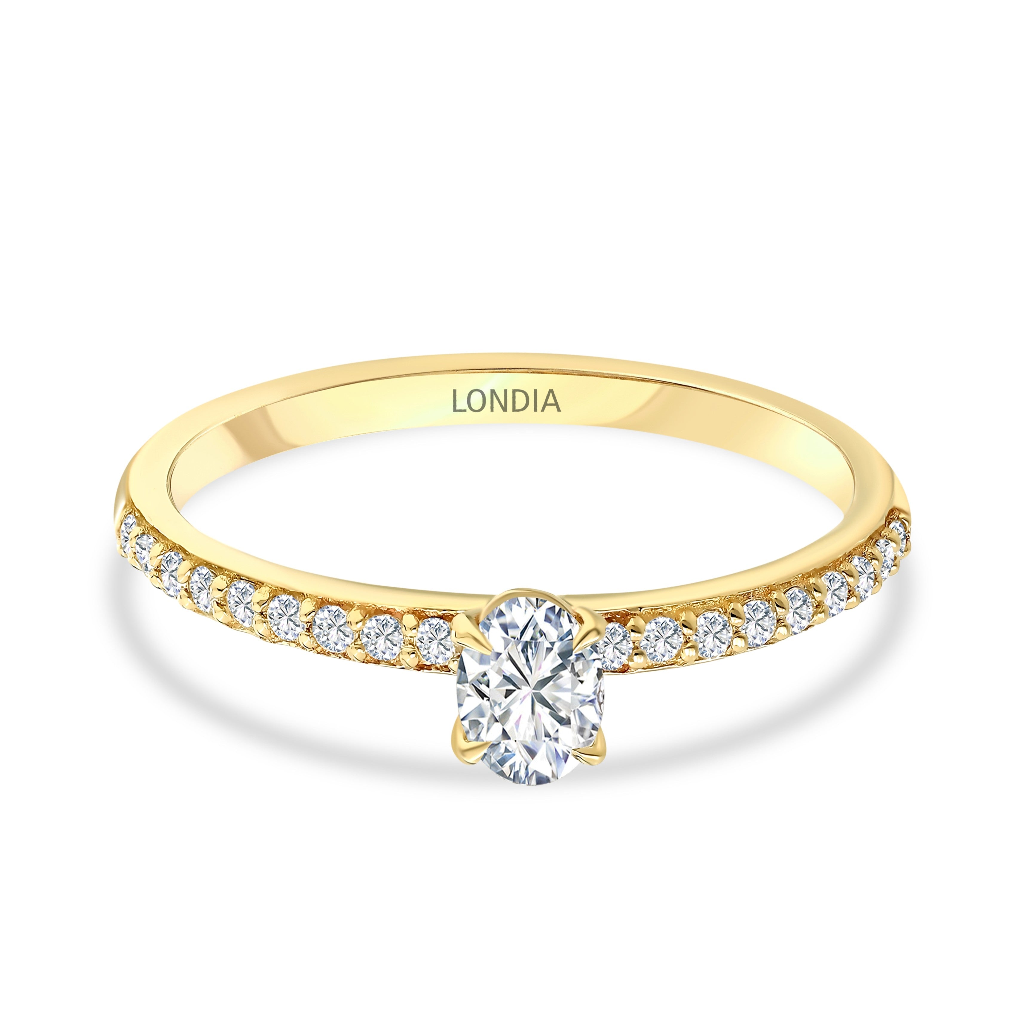 0.45 Ct. Natural Diamond Oval Solitaire ''Side Stone'' Ring in 14K Gold