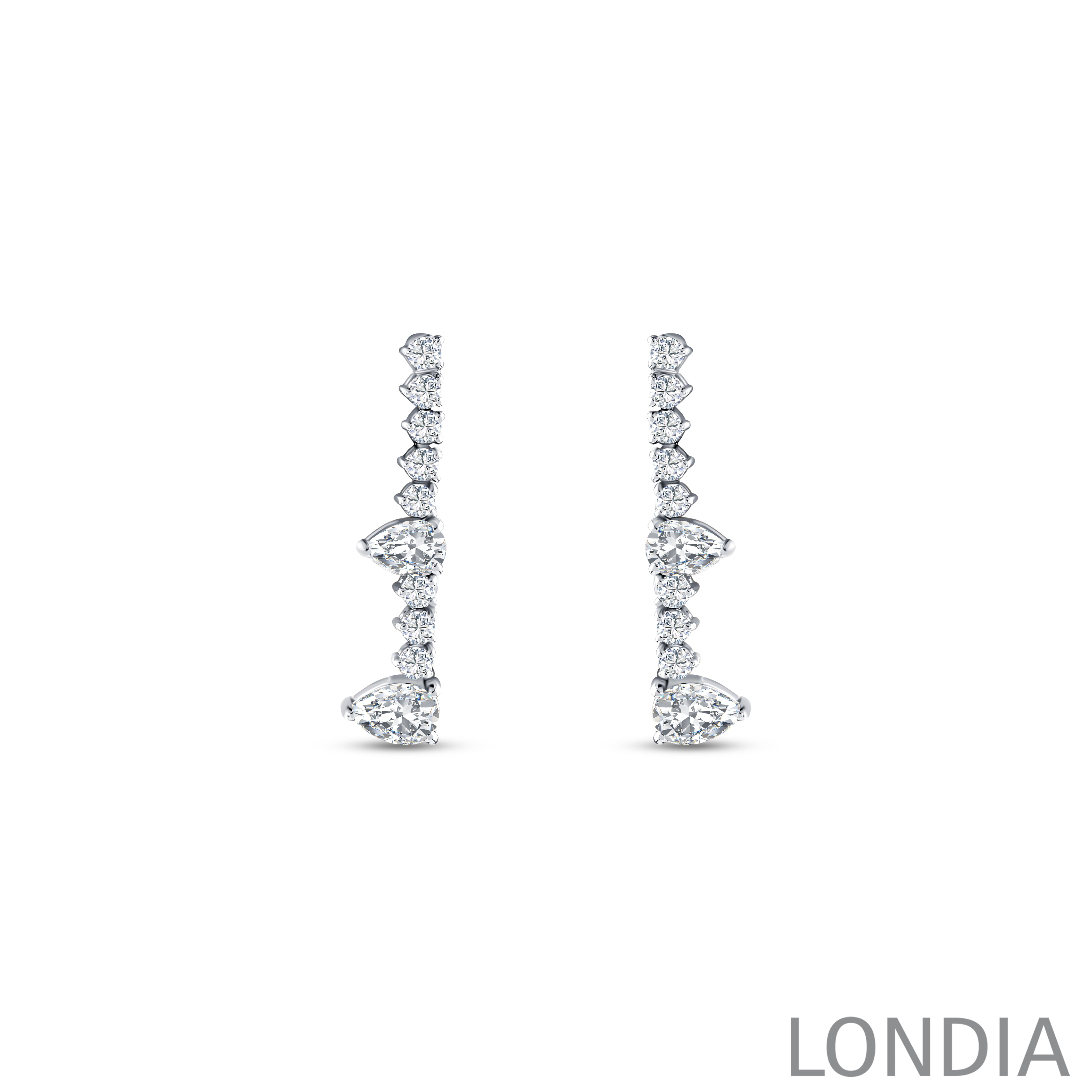 Londia Lumera Diamond Design Earring, crafted in 18K gold, embodies the essence of radiant luxury with its continuous stream of shimmering brilliance. Inspired by the captivating glow of the aurora lights, each diamond is meticulously placed to create a fluid dance of light across the wrist.