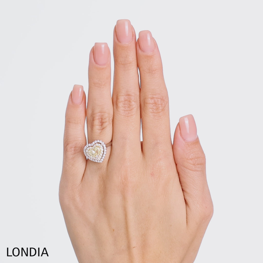 1.00 Ct. Fancy Yellow Diamond Heart Design Ring 18K Gold